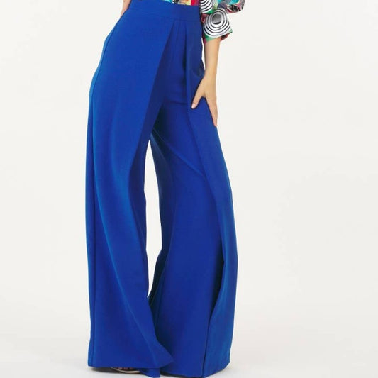 BLUE WIDE PLEATED PALAZZO PANTS