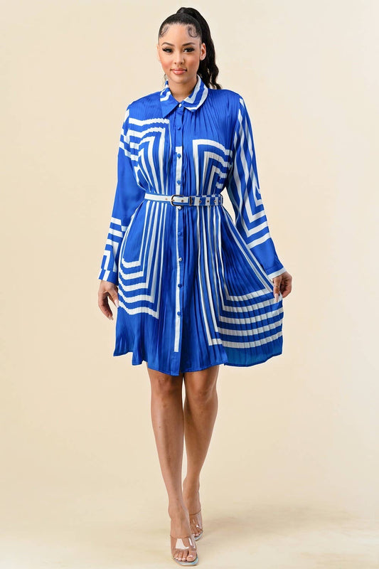 BUTTON DOWN BOW TIE TOP & PLEATED SKIRT SET - PINK