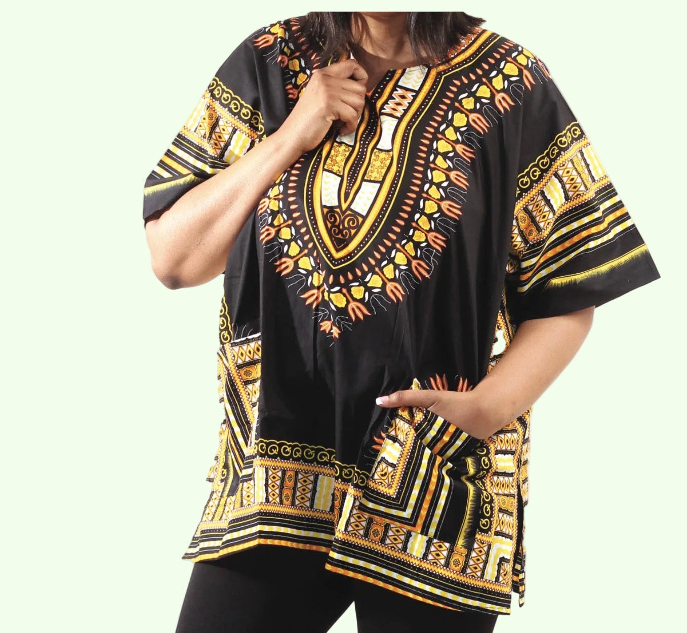 The traditional dashiki is a statement peace that brings together vibrant colors, and distinctive design. It is a versatile item suitable for a wide range of occasions, the comfortable fit, and practical pockets, make it a fusion of style and functionality perfect for those who want to celebrate cultural fashion bull patterns with a unique eye catching border color with two pockets