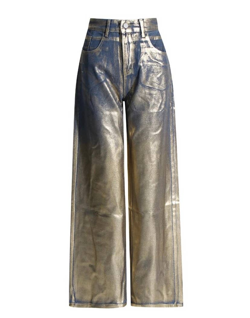Gold Foil Denim Wide Legged jeans