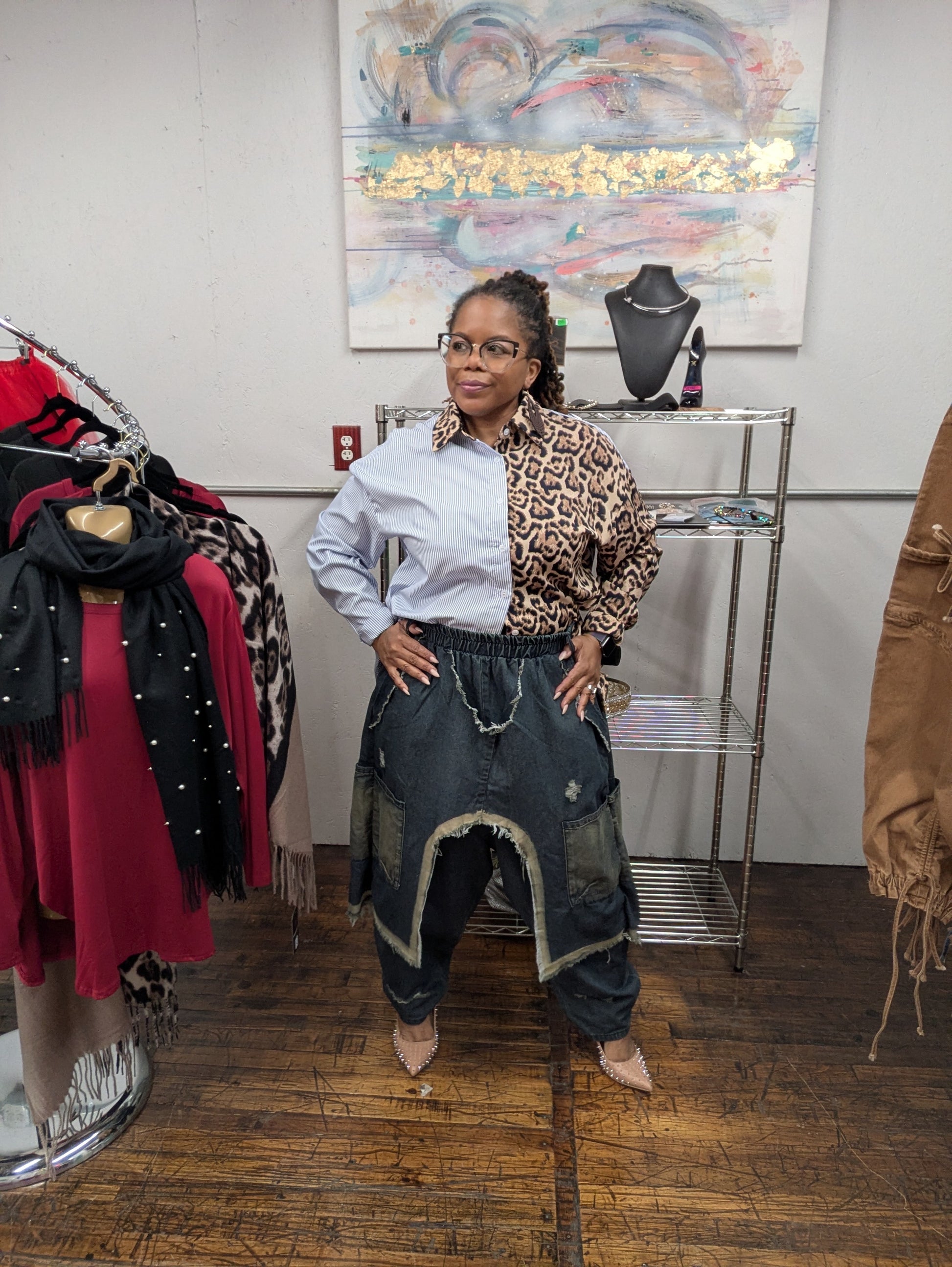 Unleash your inner rebel with our Harem Distressed Jeans! These wide leg pants feature an elastic waist for ultimate comfort and an ankle length to show off your killer shoes. The unique twist at the torso adds an edgy touch. Made with a blend of spandex and polyester, these jeans will keep up with your daring adventures. Available in sizes Small to 2X and in Dark Blue or Black.