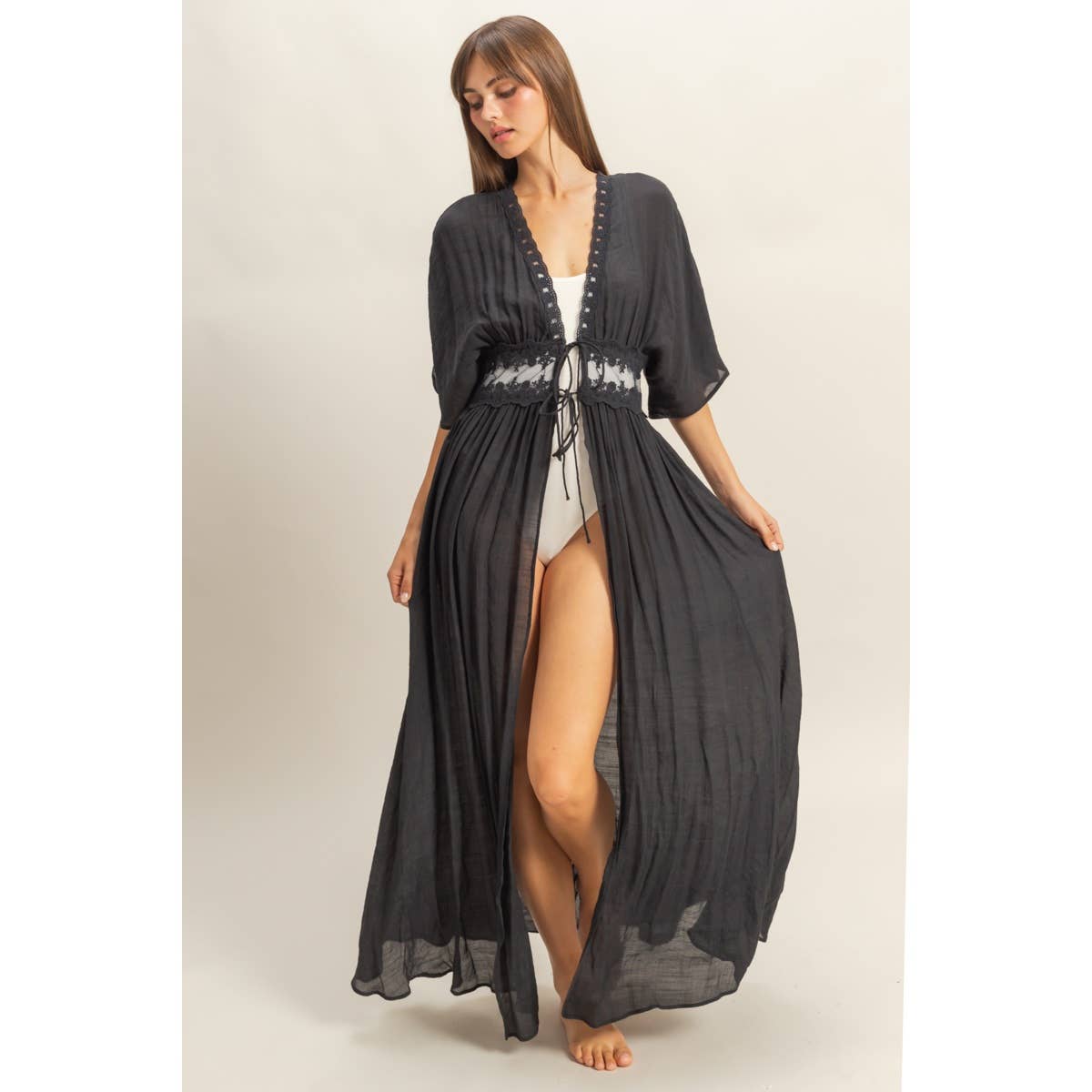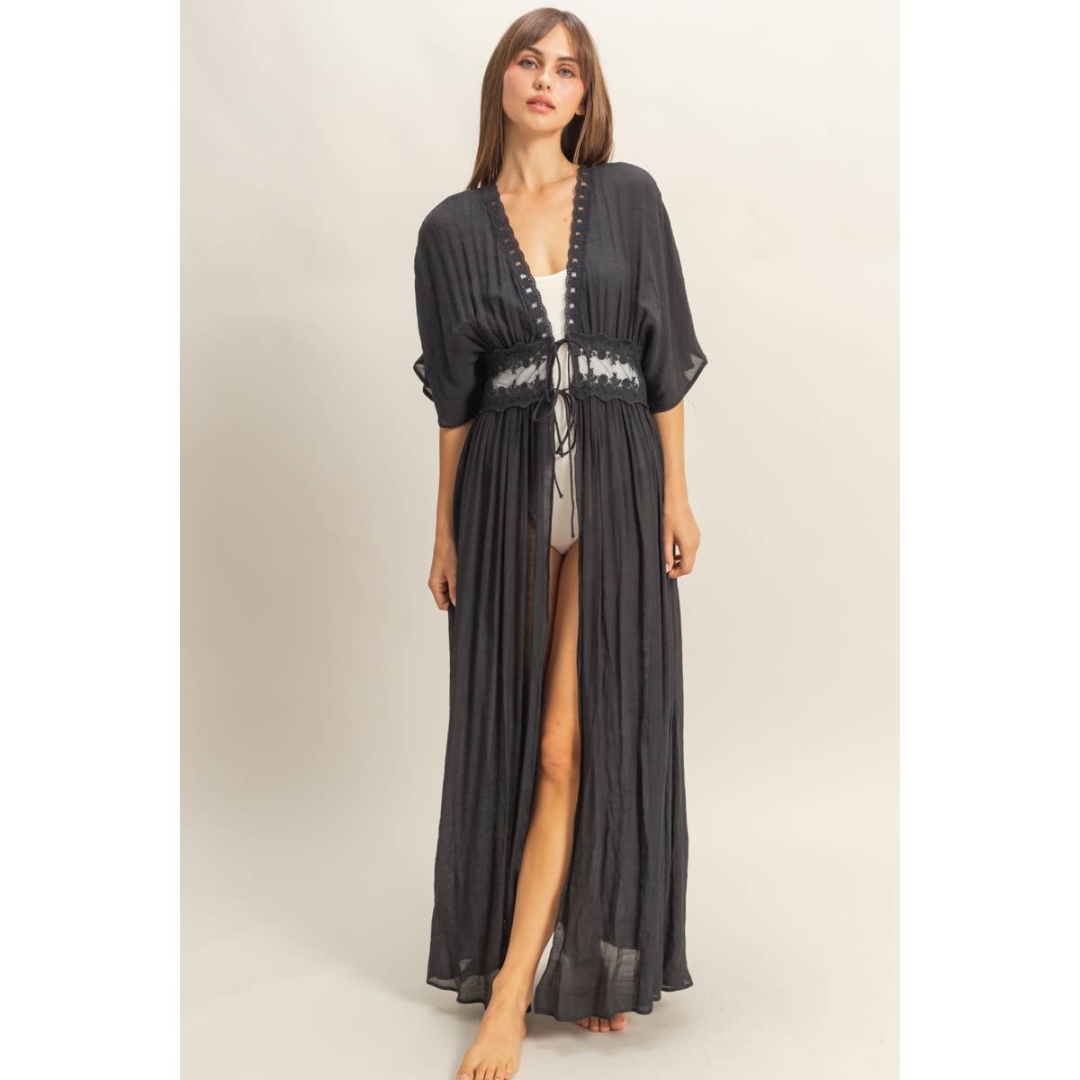 Tie-Front Lace Long Duster
