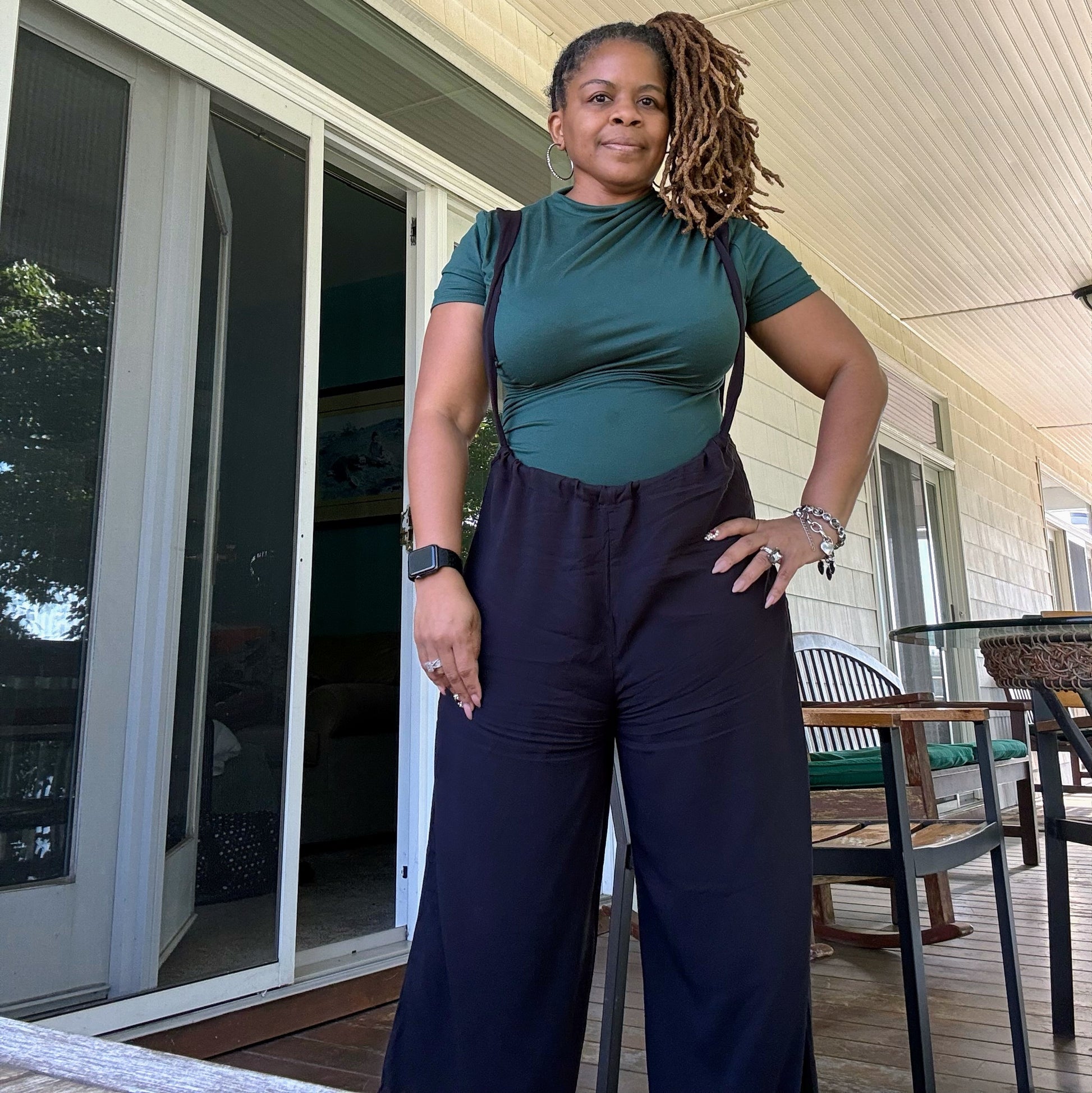 Tie Back Suspender Jumpsuit With Pockets - SUSPENDER STYLE - ADJUSTABLE STRAPS - TIE BACK