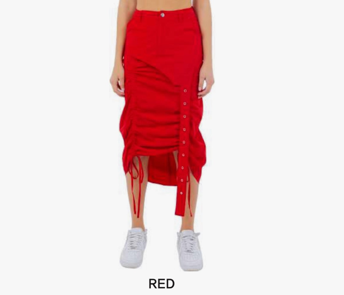 - FRONT RUCHED DETAILS - MIDI LENGTH, SIDE SHIRRINGS E.g. SIZE S : WAIST - 26.75 INCH, FRONT LENGTH - 30.5 INCH